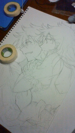 全体のバランス測れないからバランスも崩れるし………今生で最後だな、こんなでかい絵描くの